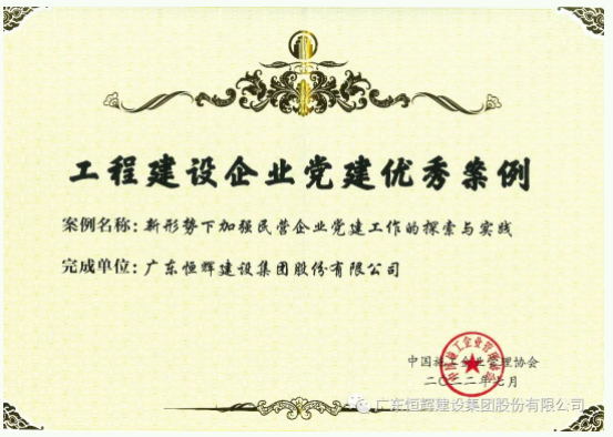 【黨建強(qiáng)企】恒輝建設(shè)榮獲中國(guó)工程建設(shè)企業(yè)黨建優(yōu)秀案例!